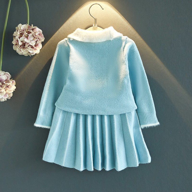 あたたかく上品にまとまる 女の子ニットスカートセット 襟付き長袖セーター&プリーツスカート コットン混 90~130cm