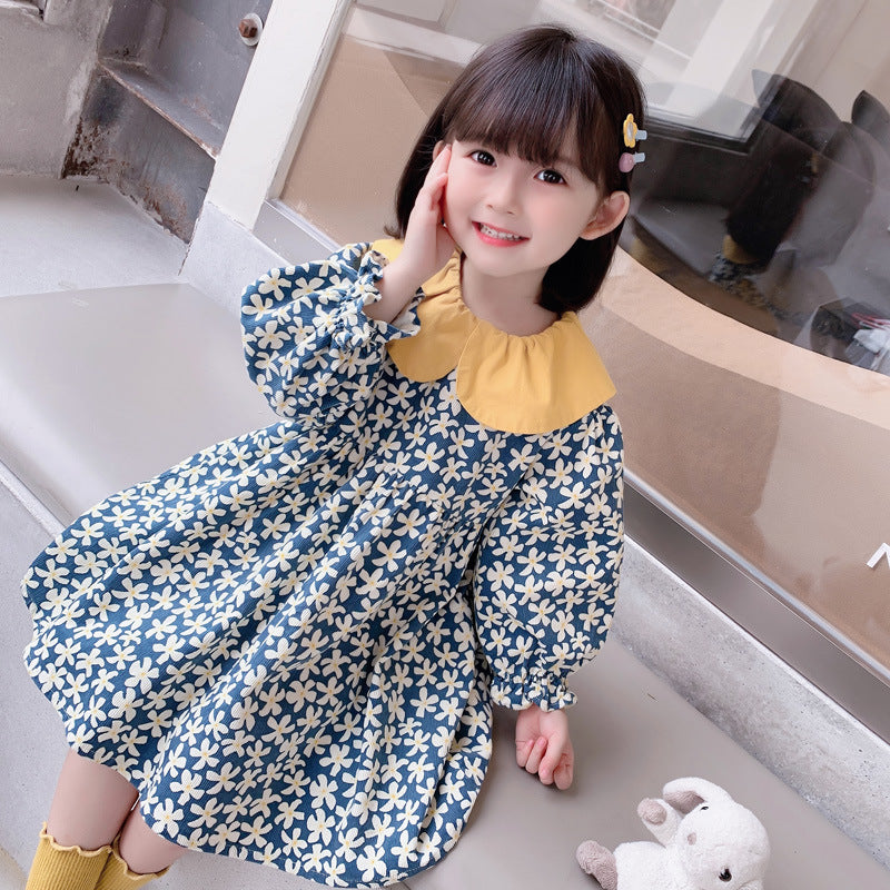 ふんわりビッグカラーが上品に映える 女の子プリンセスワンピース 小花柄 コットン 90〜130cm