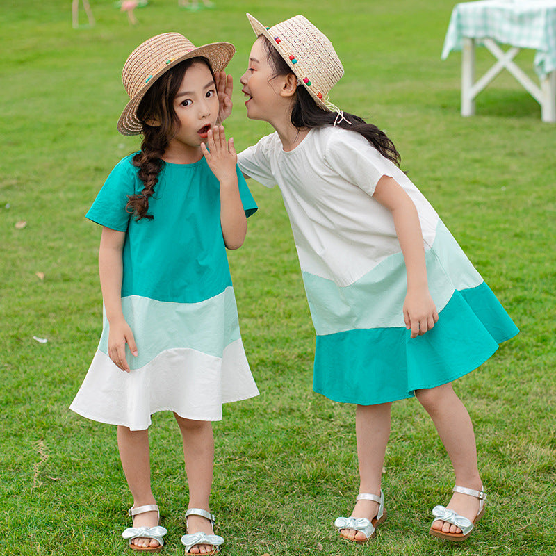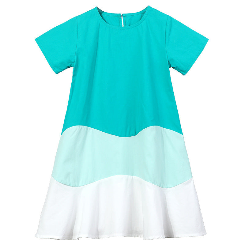 さらっとコットンで夏を軽やかに楽しめる 女の子Aラインワンピース 配色切り替え 韓国風 グリーン 120~160cm