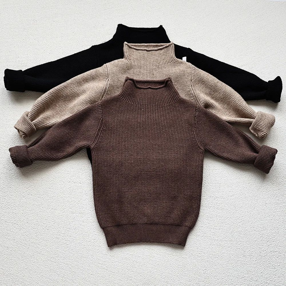 秋コーデにぴったりな女の子韓国風タートルネックニットトップス 80–130cm