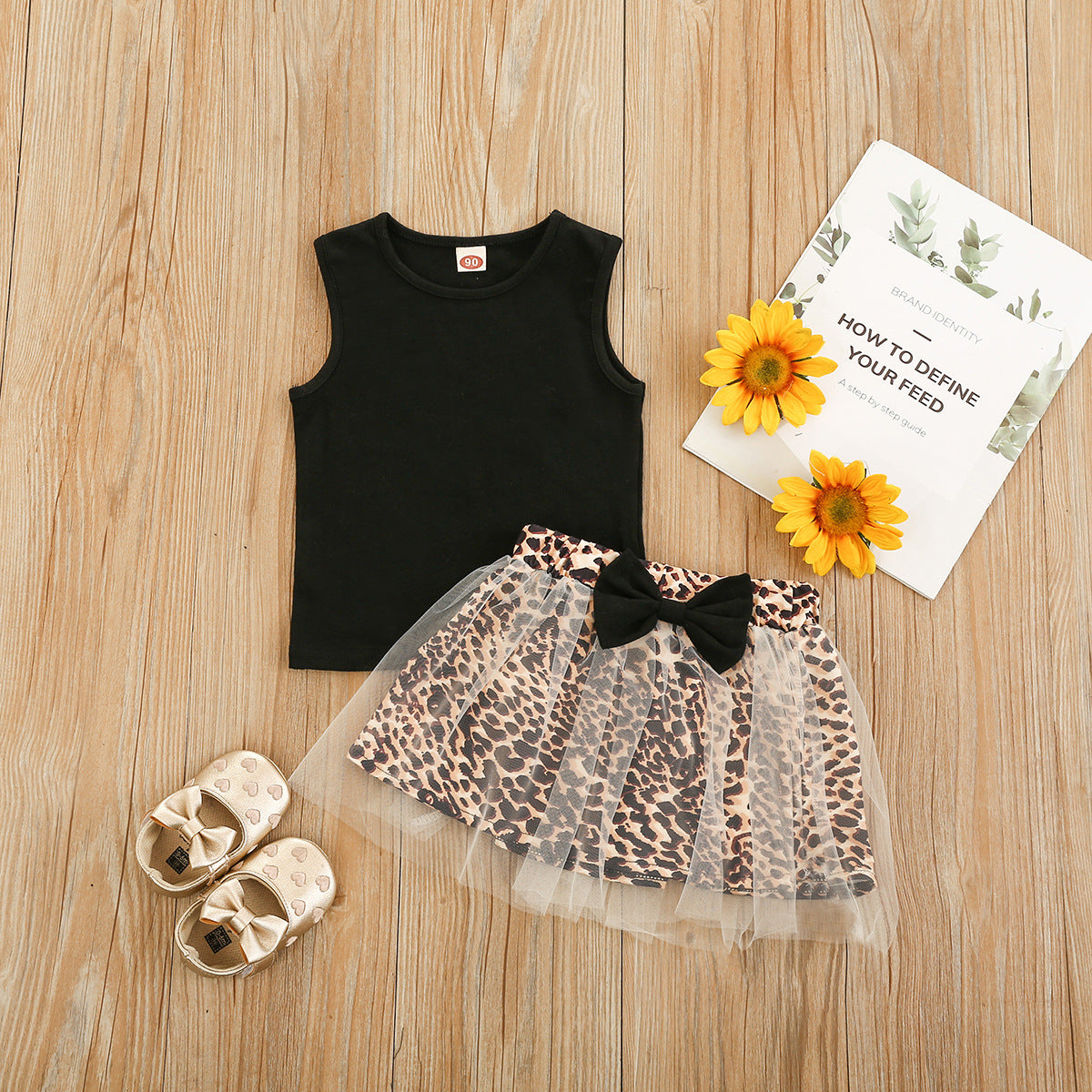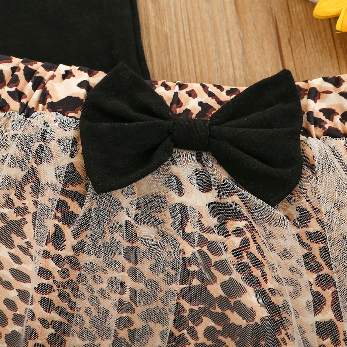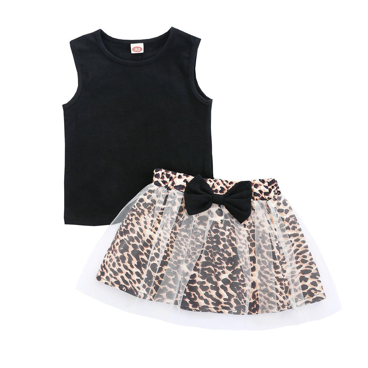 ブラックノースリーブ&レオパード柄チュールスカート 2点セット(90・100・110・120・130cm)