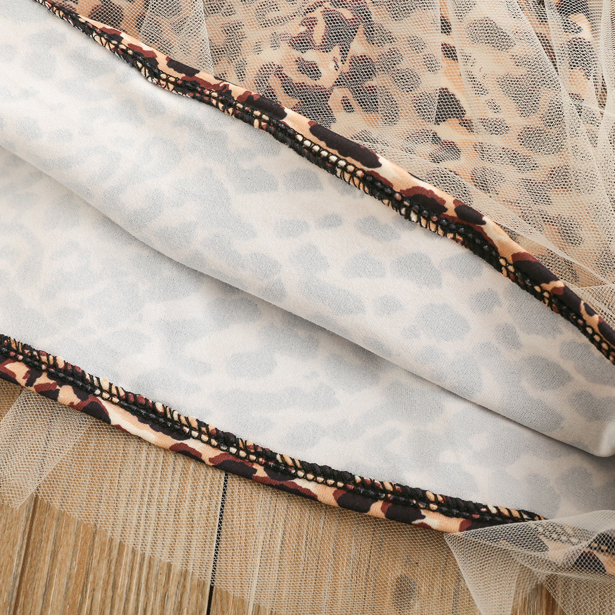 甘辛レオパードで大人かわいい 女の子ノースリーブトップス&チュールスカートセット リボン付き コットン素材 90~130cm