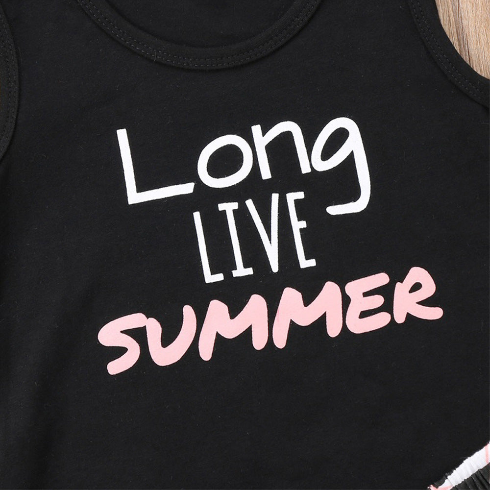 英字プリントタンクトップ&ショートパンツ&リボンヘアバンド 3点セット(90・100・110・120・130cm)