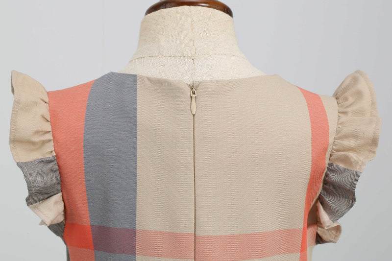 上品マルチチェックのフリル袖ワンピース 90~140cm