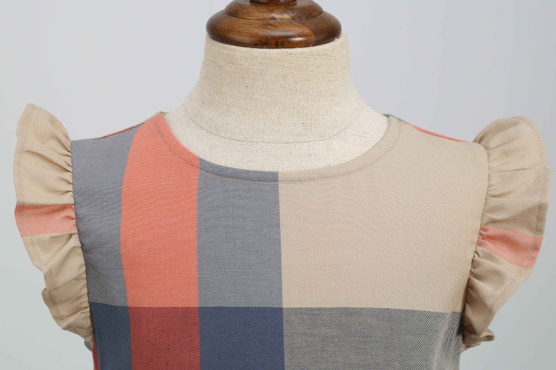 上品マルチチェックで写真映えする 女の子フリル袖ワンピース ピュアコットン 90~140cm
