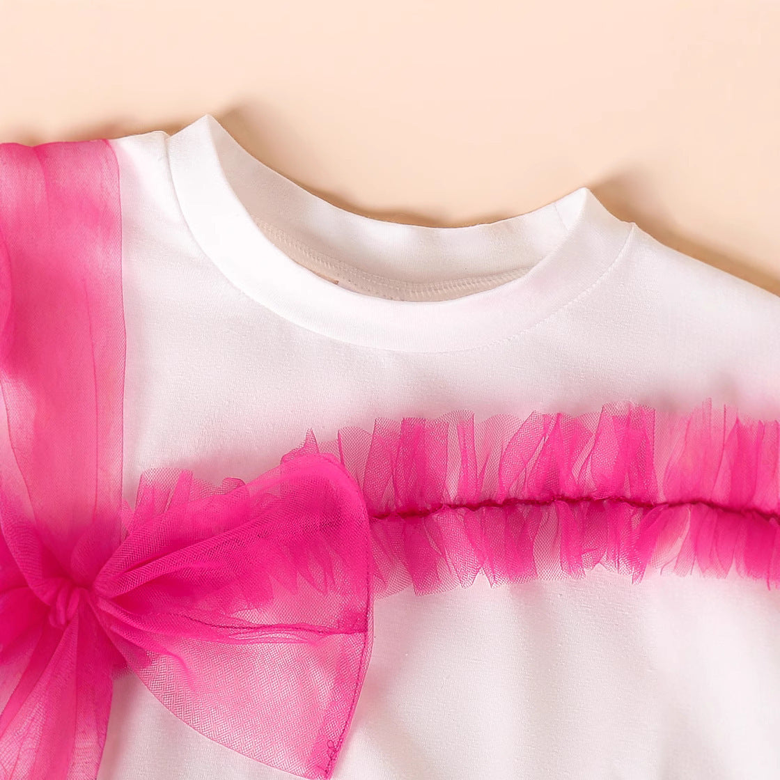 チュールリボンが目を惹く 半袖Tシャツ&ショートパンツ&ベルトセット 4~7歳