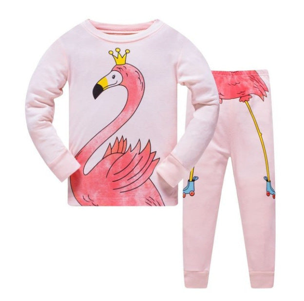 おうち時間がもっと楽しくなる 女の子長袖ルームウェア上下セット マーメイド・フラミンゴプリント コットン 90〜140cm