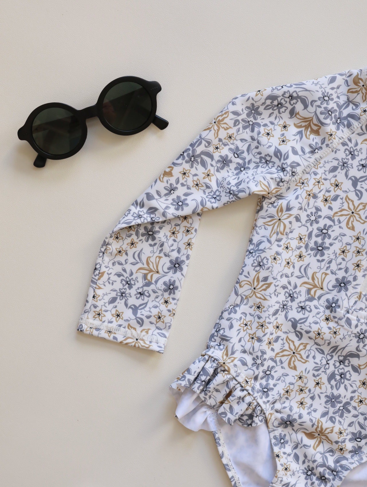 水あそびが待ち遠しくなる、スイートフローラルの長袖UVスイムウェア。