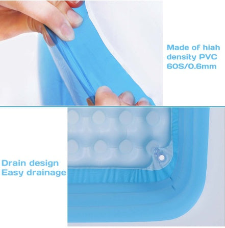 排水バルブ付き 厚手PVC 空気入れ式 長方形ビニールプール 150 x 110 x 50cm 家庭用キッズ&ファミリープール