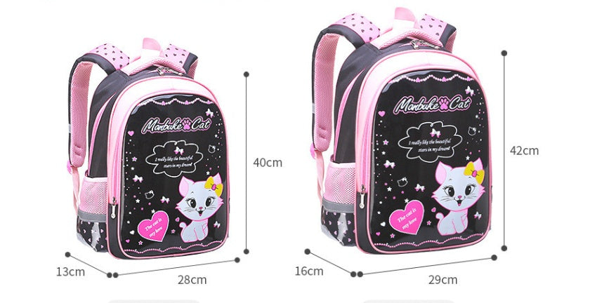 小学生女の子向け 猫デザイン通学リュック 6〜12歳対応 2サイズ・ポリエステル