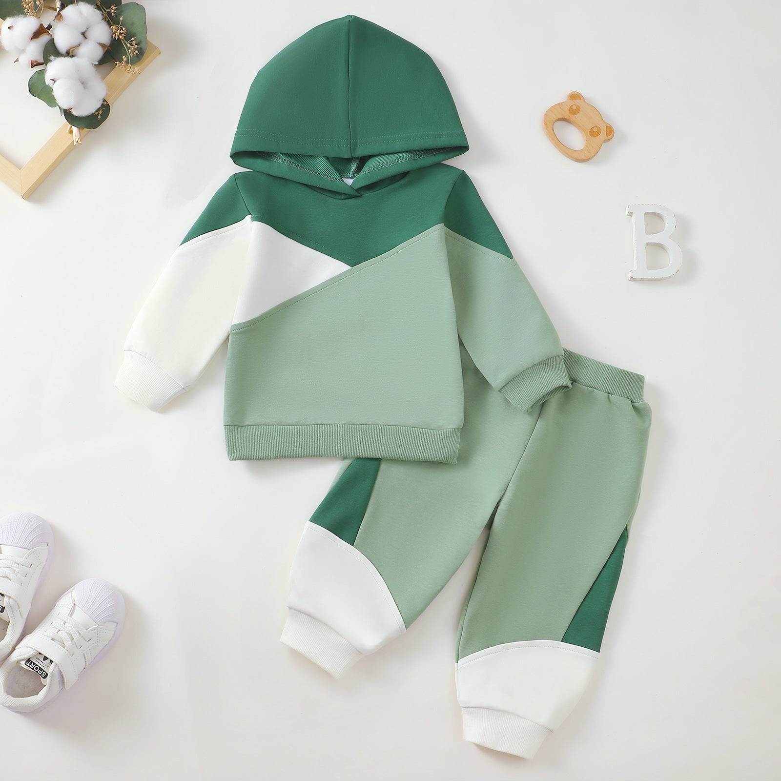 カラーブロック フード付きパーカー&ロングパンツ上下セット 6ヶ月〜4歳