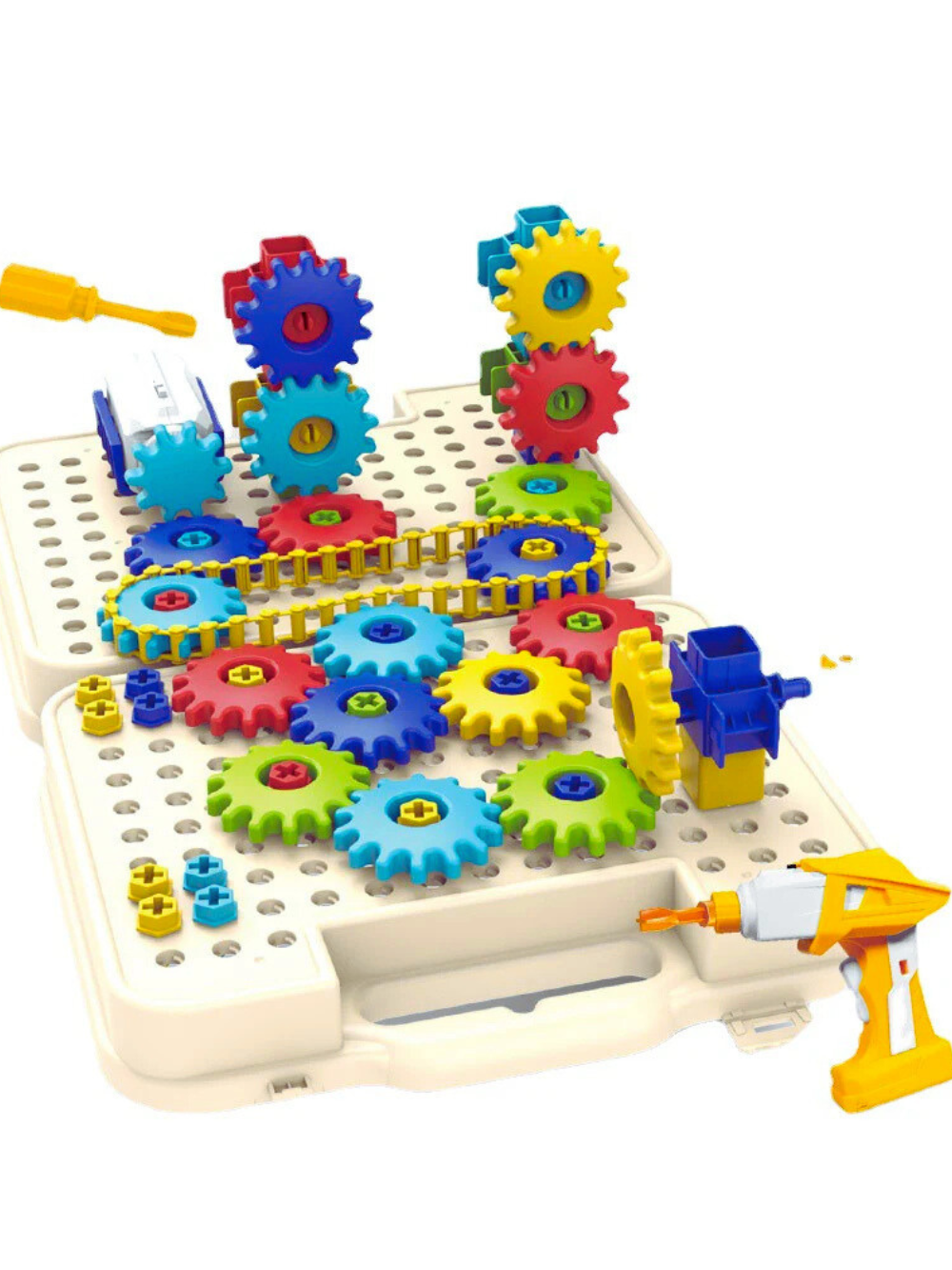 電動ドリル付きギア組み立てボード 3D回転パズル 歯車たっぷり知育ツールテーブル