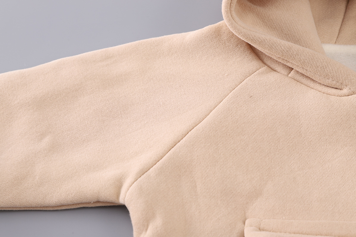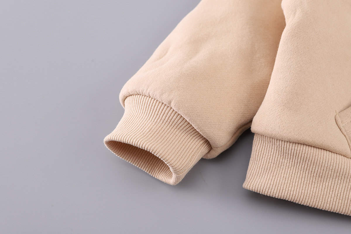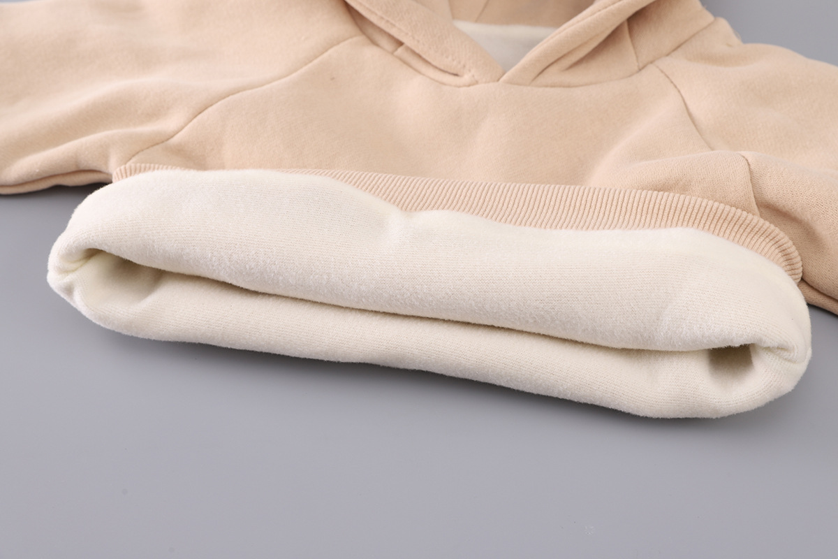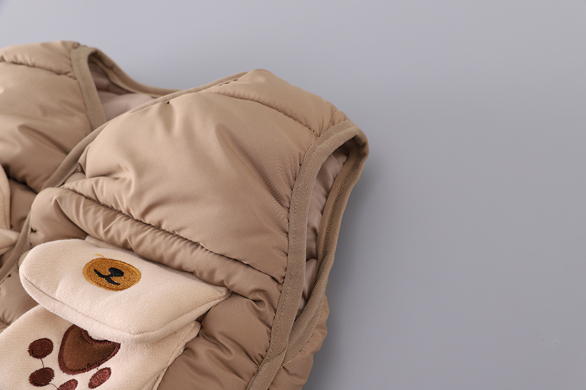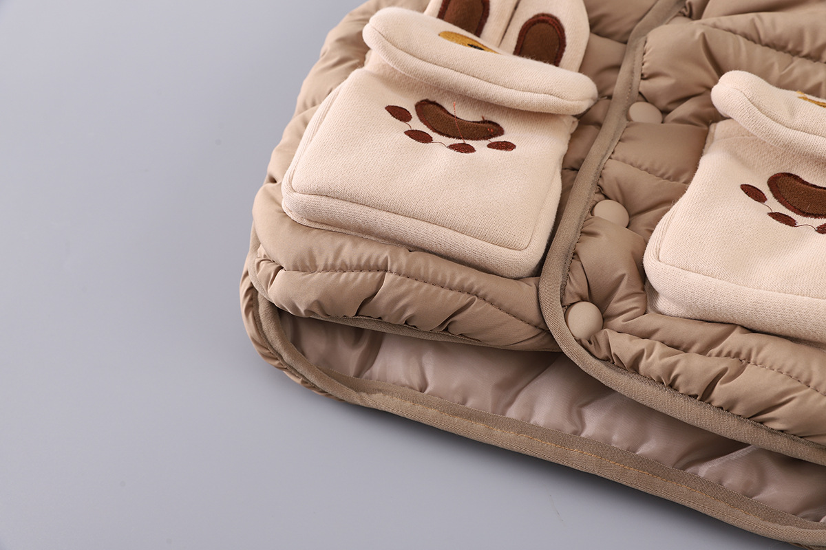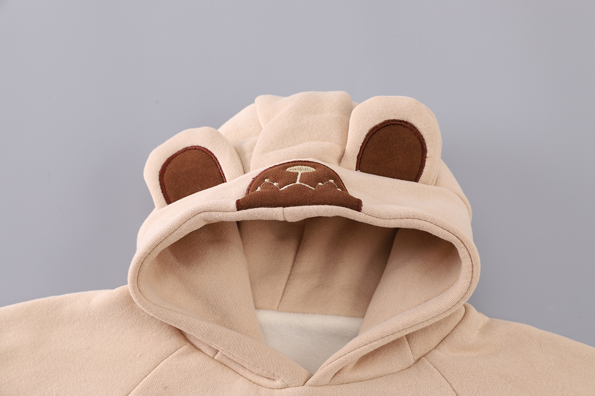 冬の外出もふんわり暖かく可愛くまとまる 子どもフード付きアウター3点セット 足跡ポケット&くま耳デザイン コットン×フリース裏地 80~120cm
