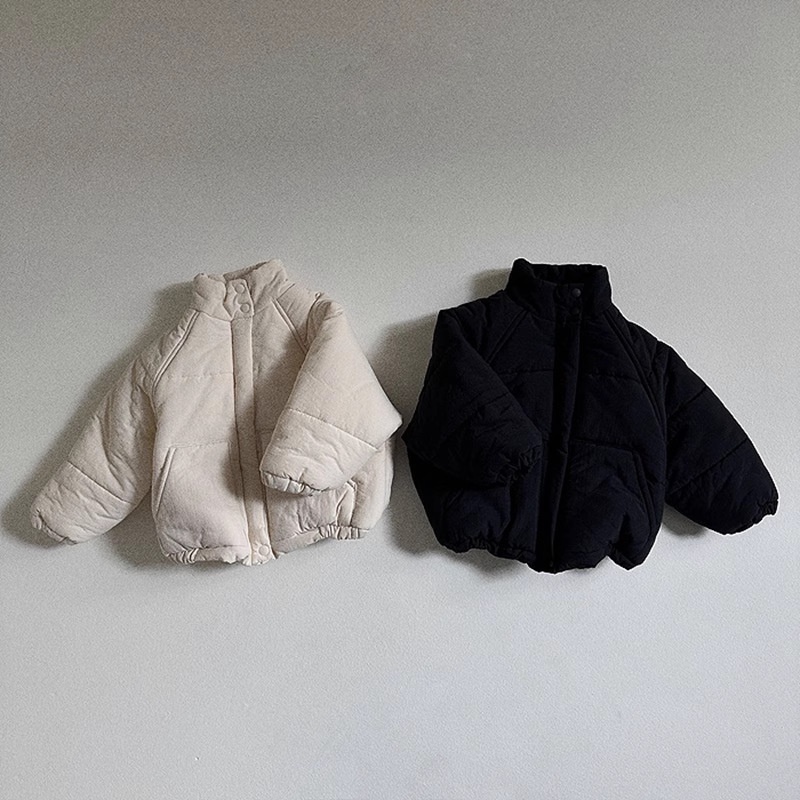 韓国風 秋冬 中綿スタンドカラージャケット 男女兼用 子供用 厚手ショートコート 80-130cm | Korean Style Autumn Winter Padded Stand Collar Short Jacket Unisex Kids 80-130cm