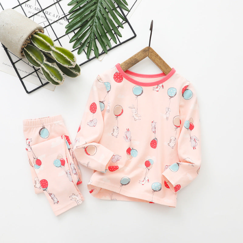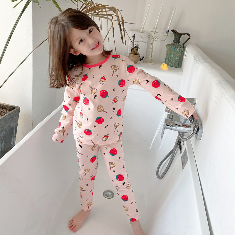 冷えやすい季節に心地よい 子ども長袖パジャマ上下セット 総柄プリント コットン95% ラウンドネック 110~160cm
