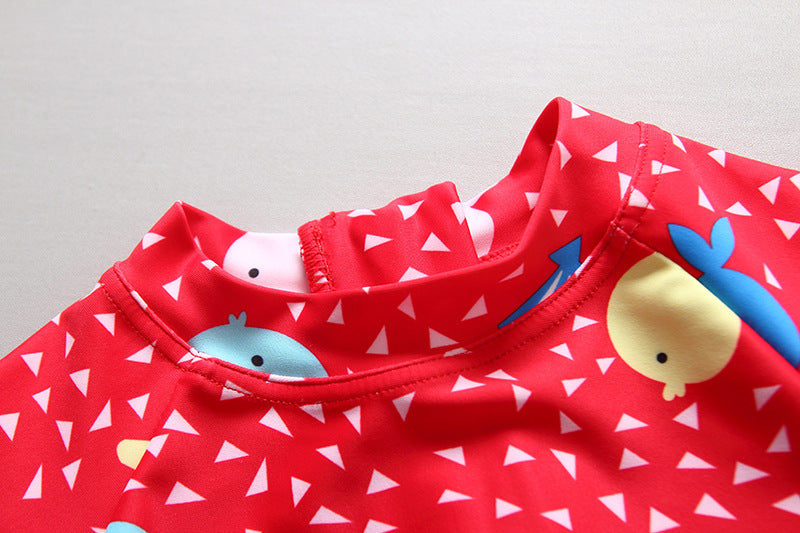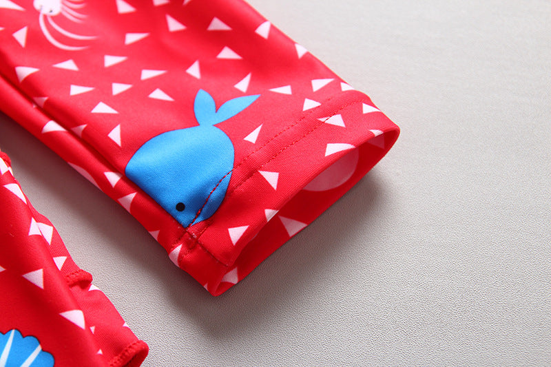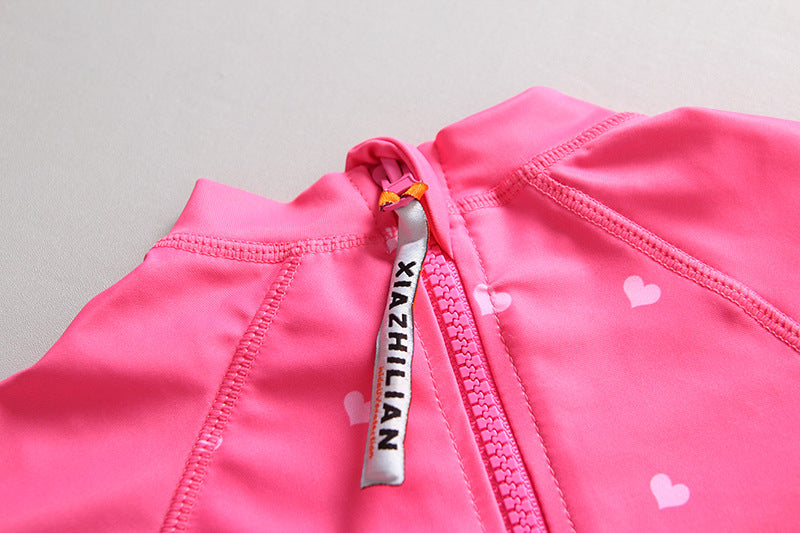 キッズ長袖ラッシュガード水着 ピンク・レッド 前開きファスナー 90・100・110・120・130cm ポリエステル100% サンスクリーンスイムウェア