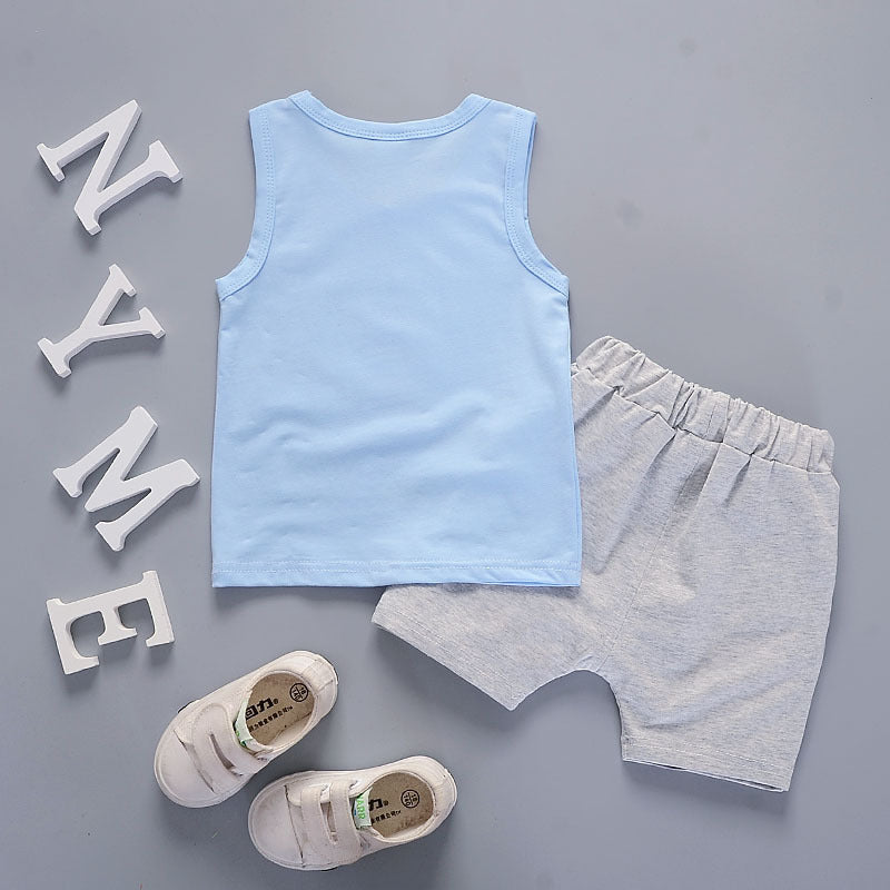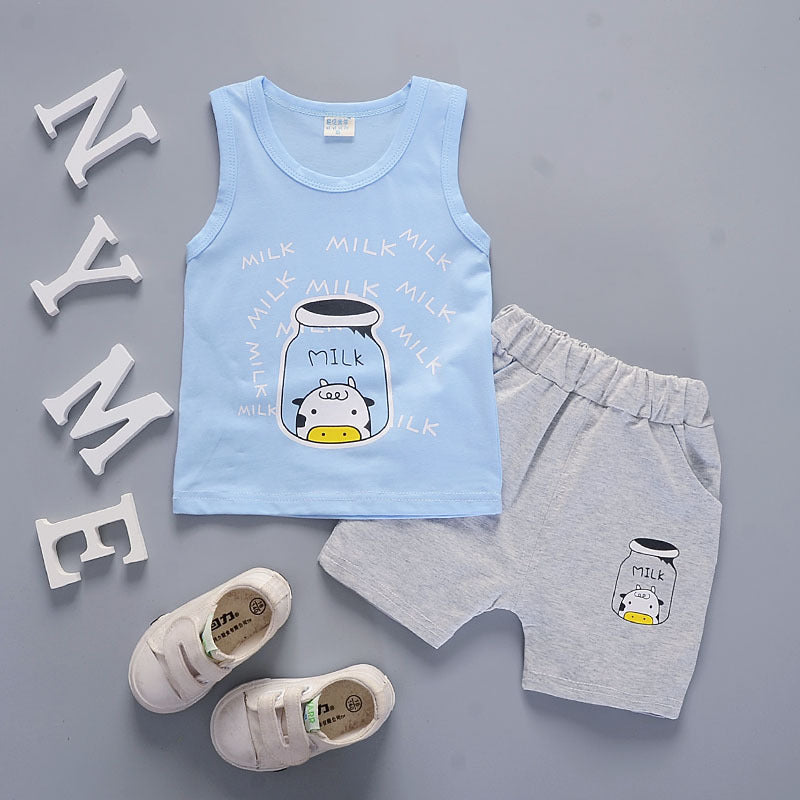 さらっと涼しく毎日が快適にきまる 子どもノースリーブ上下セット ミルクボトルカートゥーンプリント コットン薄手 ショートパンツ 80~110cm
