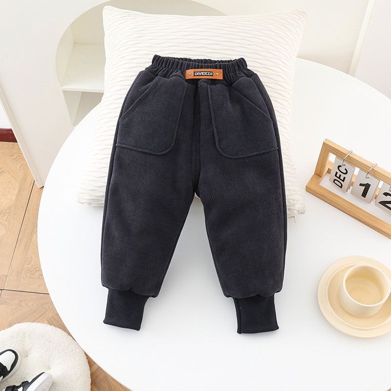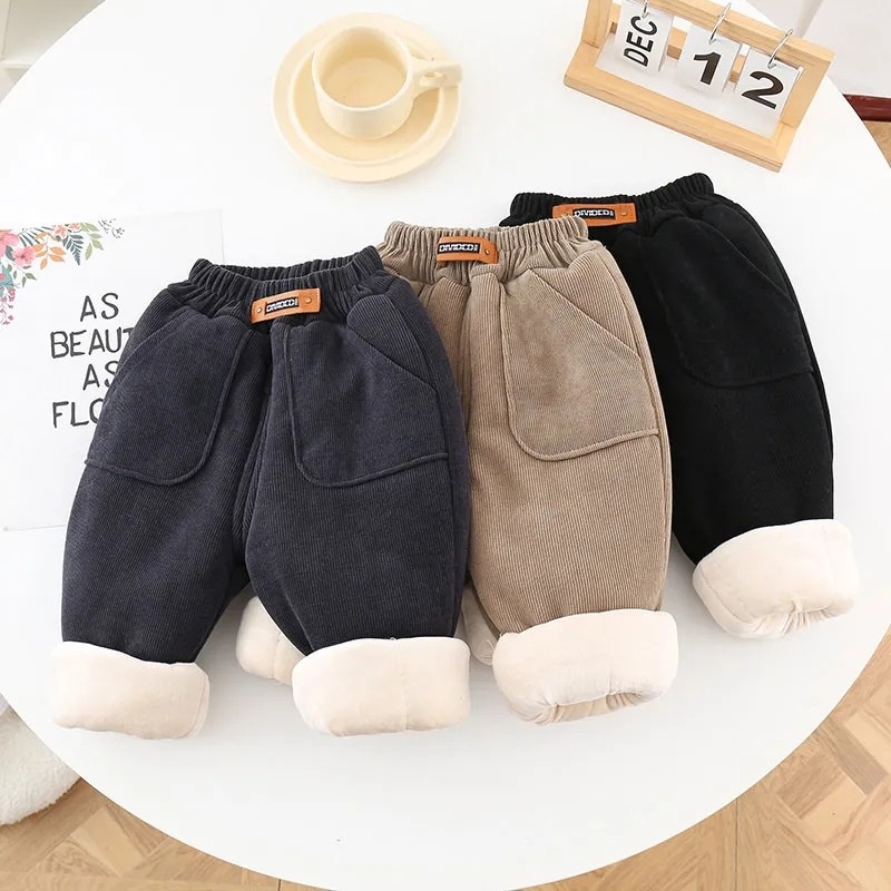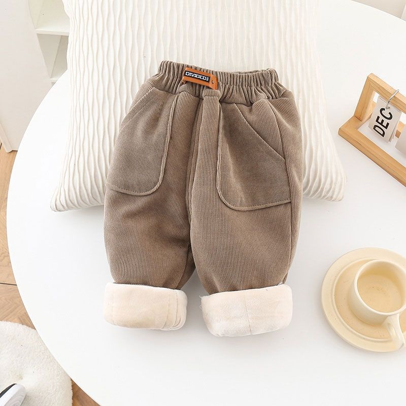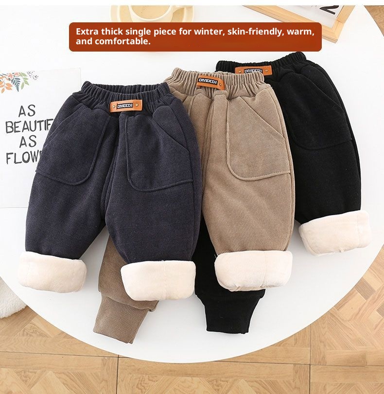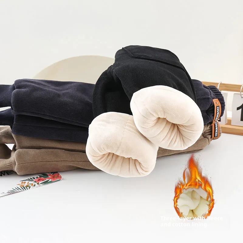 キッズ裏起毛コーデュロイ厚手パンツ 高ウエスト・ふわふわラビットファー素材・冬向けカジュアル | Kids Thick Corduroy Fleece-Lined High-Waist Winter Pants