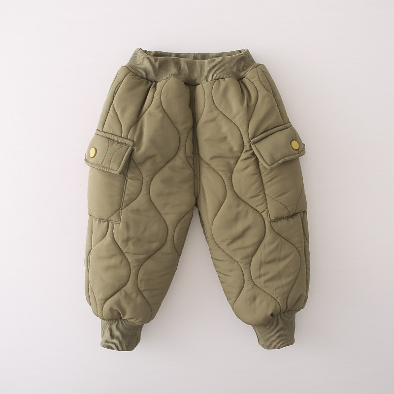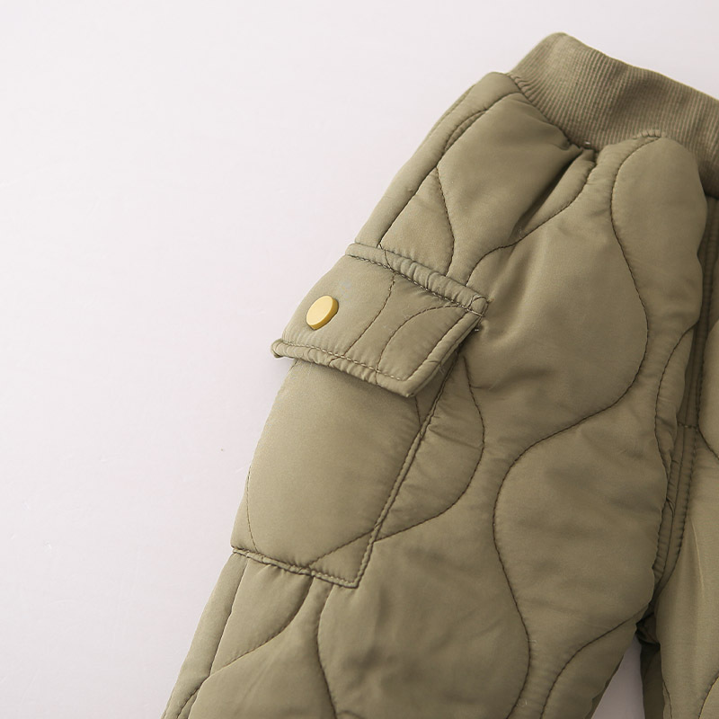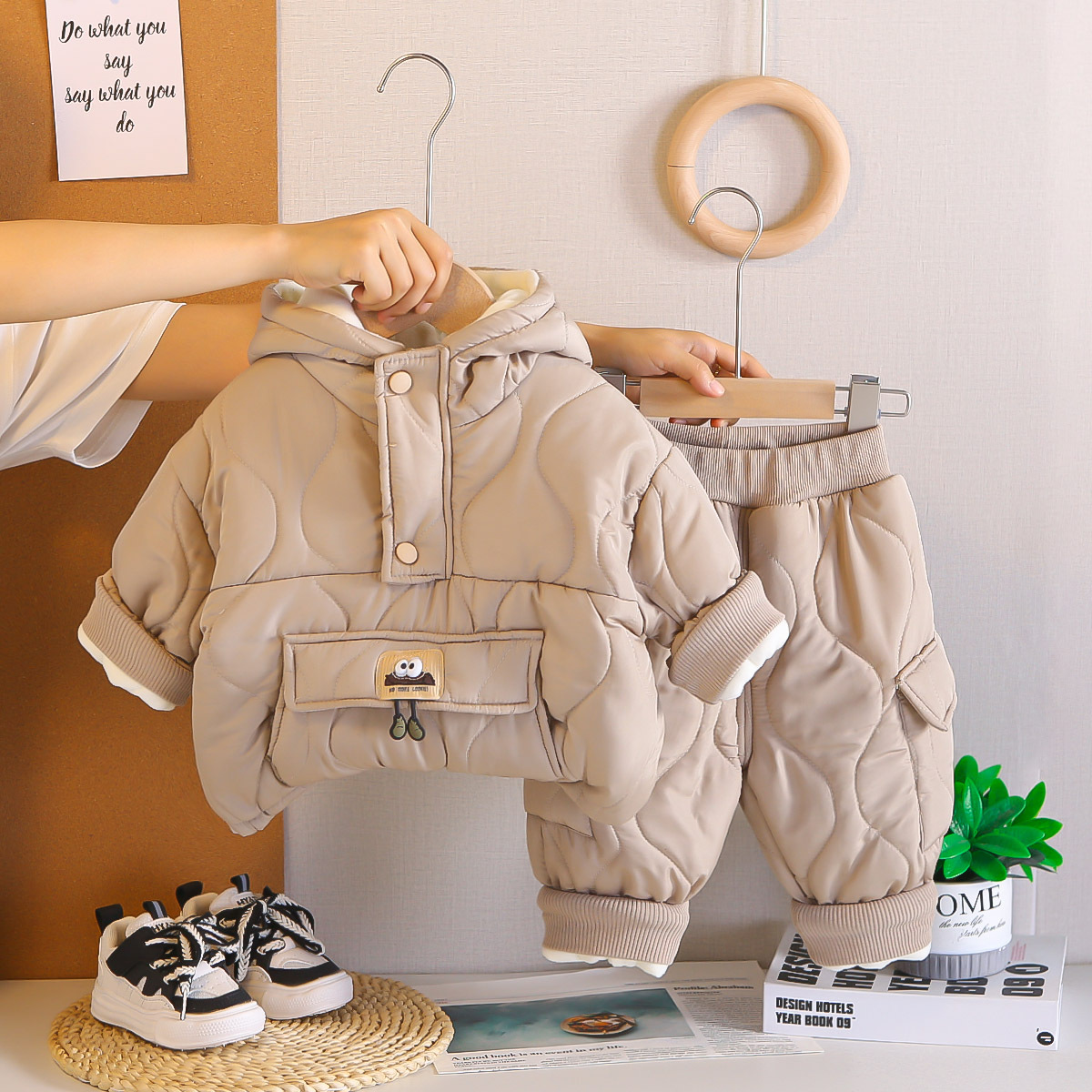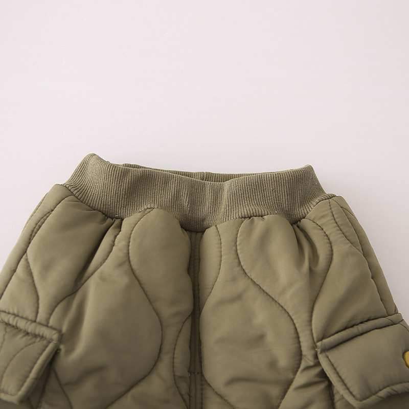 キッズ冬用あったか2点セット 中綿ジャケット風トップス・パンツ 綿素材・韓国風・男の子コーデ | Kids Winter Cotton Top & Pants Two-Piece Set