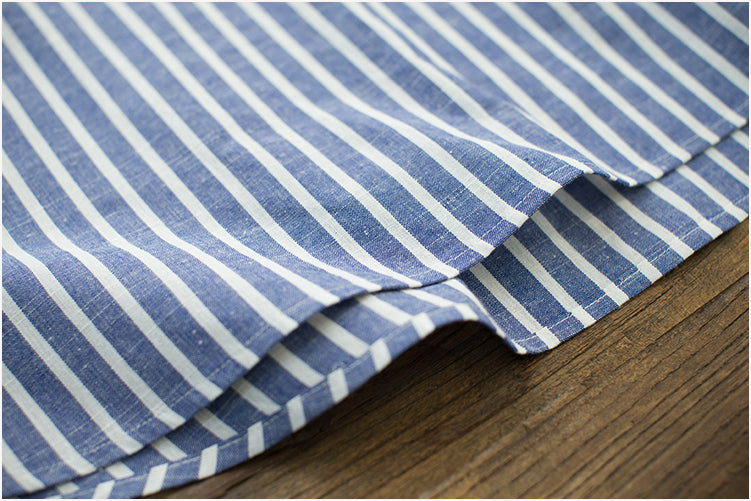マタニティ シャツワンピース ストライプ コットンリネンを自然に取り入れ、夏の通勤やお出かけにも頼れる一枚です。