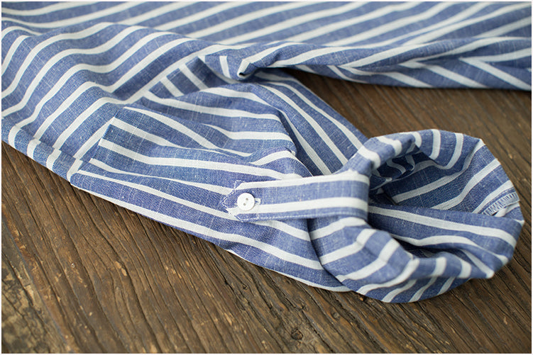 涼しくきちんと見え マタニティシャツワンピース ストライプ ラペルカラー ロングスリーブ コットンリネン素材 S〜3XL