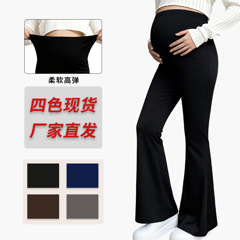 脚長見えで外出も快適 マタニティフレアレギンス ハイウエスト腹帯サポート ミルクシルク素材 伸縮 秋冬 S~XL