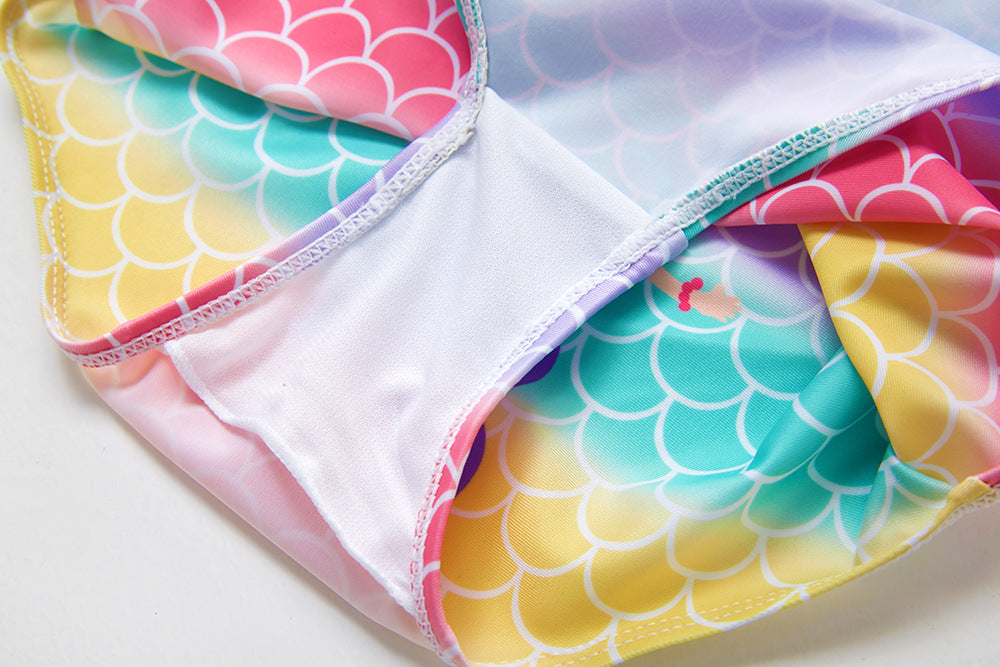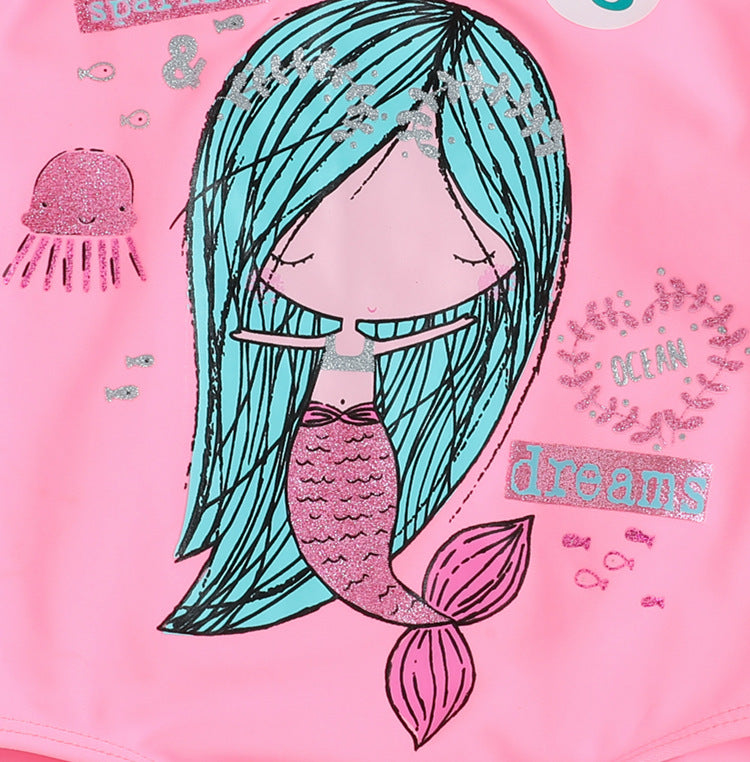 マーメイド柄 女の子ワンピース水着(ピンク/レインボー)1〜8歳サイズ プール・海の水遊びに