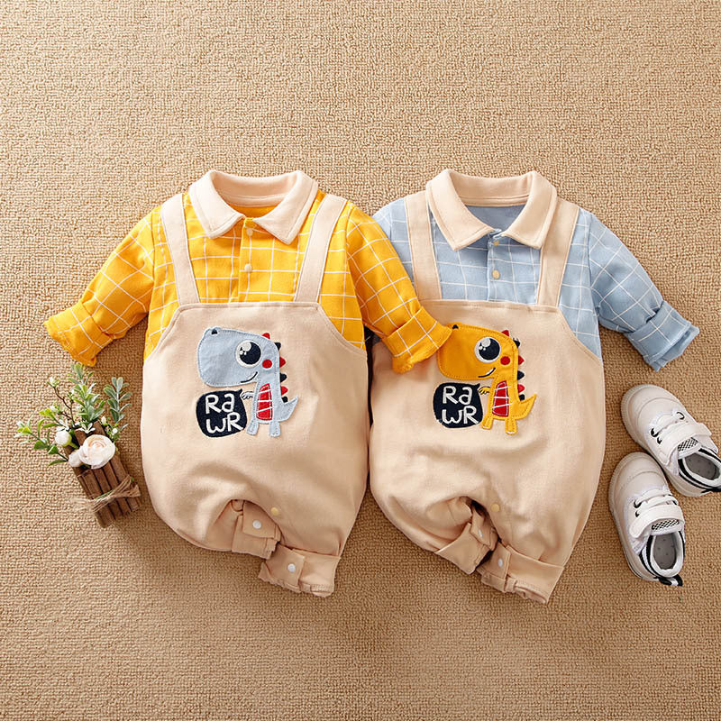 恐竜モチーフがかわいい ベビー長袖コットンジャンプスーツ 春秋用 59–90cm