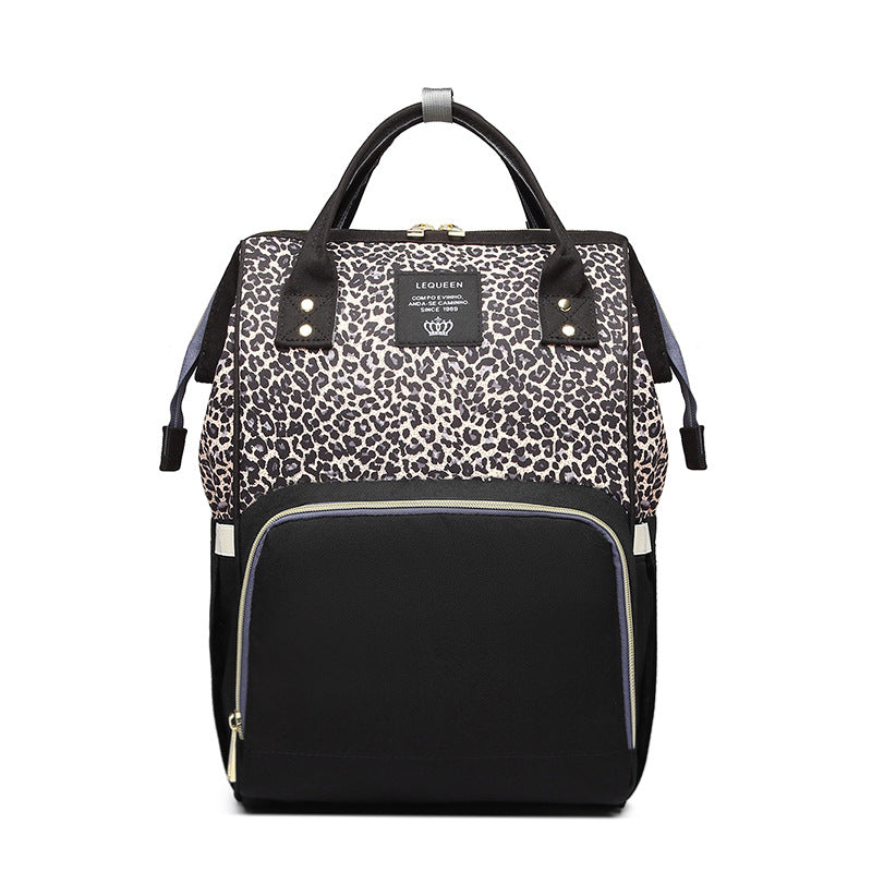 USB充電ポート付き マザーズリュック レオパード柄 大容量 多機能 26×15×42cm 2WAY