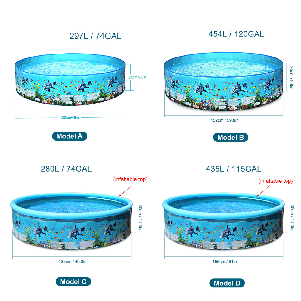 折りたたみ式 ハードキッズプール アクアリウム柄 PVC ブルー 297L・454L・280L・435L(屋外水あそび用)