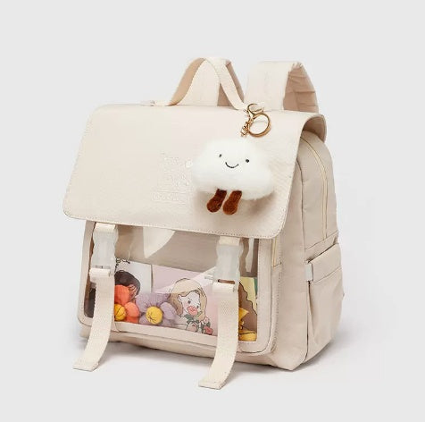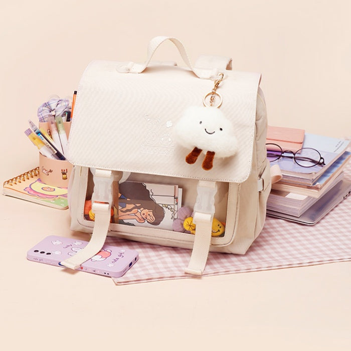 【13インチPC対応】防水ナイロン通学バックパック 30×14×29cm|フラップ×ファスナーで中身が整うスクエアリュック(オフホワイト)