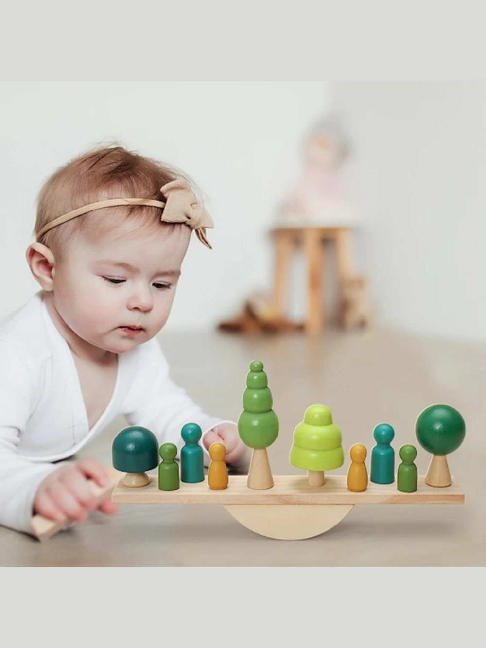 森の動物とゆらり、心が整う 木製バランスシーソー 知育トイ